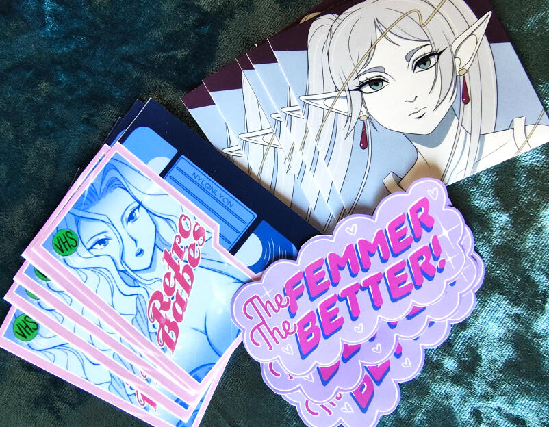 Small merchandise with an emphasis on bold, easy to read designs with a bit of humor!